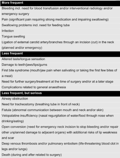 A group of UK colleagues has just made a proposal to be used in the informed consent framework for Transoral Robotic Surgery (TORS). They developed the document using a Delphi expert consensus methodology (1). Their work resulted in a recommended list of complications to be included in patient consent forms for TORS procedures.